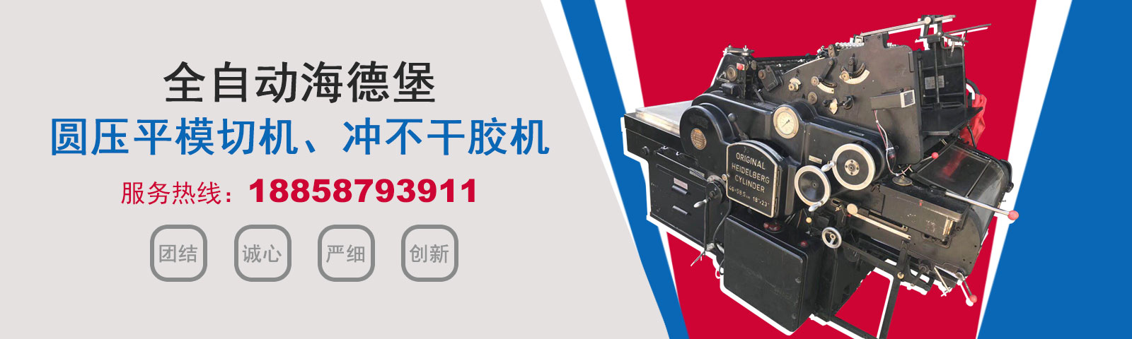 瑞安市恒柯機械廠(www.wzhkjx_com.shanshuichem.cn)是國內專業制造銷售全自動模切機,全自動燙金機,圓壓平模切機,圓壓平燙金機,滾筒燙金機,沖不干膠機,海德堡凸印機.銷售的產品系列規格齊全,產品具有速度快,壓力均勻,套印準確等特點。